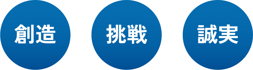 - 一、私達は創意工夫と技術開発に努め、社業の発展に寄与します。